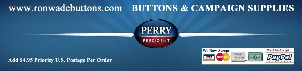 Perry12-10   1 1/4" Rick Perry Right Arrow Design Cello. Button