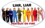 AH-6 1 3/4" x 2 3/4" oval button "Liar Liar Pants Suit on Fire"