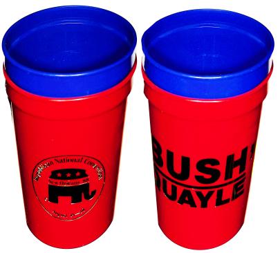 1988 Republican National Convention gift to Delegates (New Orleans) Bush-Quayle set of red and blue plastic cups like thrown out at Mardi Gras. |